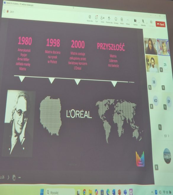 Uczniowie Technikum Usług Fryzjerskich wzięli udział w pierwszym webinarze edukacyjnym firmy