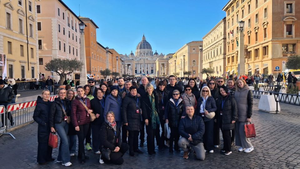 „Nadzieja zawieść nie może – Spes non confundit” – to tytuł i zarazem pierwsze słowa bulli Papieża Franciszka, ogłaszającej Jubileusz Zwyczajny Roku 2025. Dokładnie w tym czasie, po raz pierwszy w historii naszej szkoły, zorganizowaliśmy wyprawę Jubileuszowo-Integracyjną Grona Pedagogicznego, Pracowników Administracji i Obsługi oraz drogich Emerytów – tj. „wcześniej urodzonych” – w dniach 21–23 listopada 2025 roku do Rzymu.