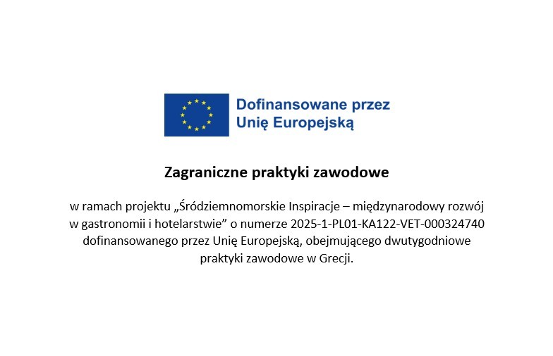 Zespół Szkół Ogólnokształcących i Zawodowych im. Ignacego Jana Paderewskiego  w Ciężkowicach ogłasza rekrutację do projektu „Śródziemnomorskie Inspiracje – międzynarodowy rozwój w  gastronomii i hotelarstwie” o numerze 2025-1-PL01-KA122-VET-000324740 dofinansowanego przez Unię Europejską, obejmującego dwutygodniowe praktyki zawodowe w Grecji.