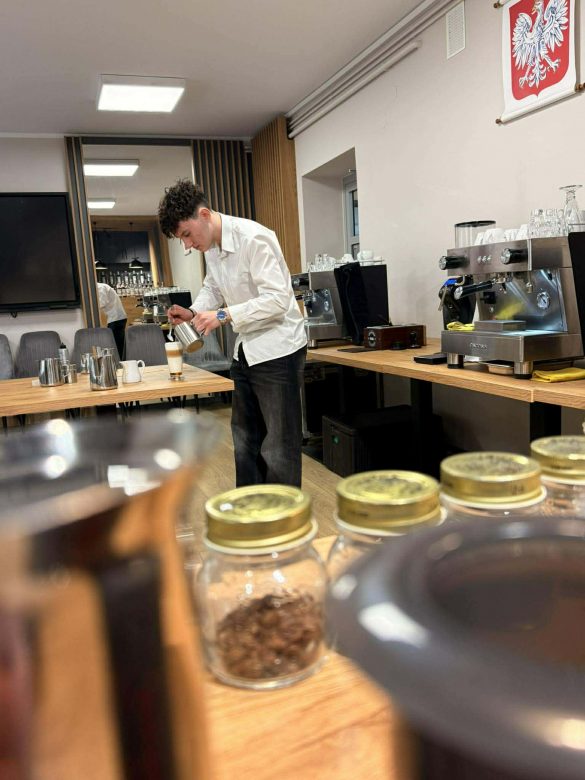 Podczas szkolenia uczniowie zostali więc wprowadzeni w magiczny w świat kawy, poznając tajniki kunsztu baristy.