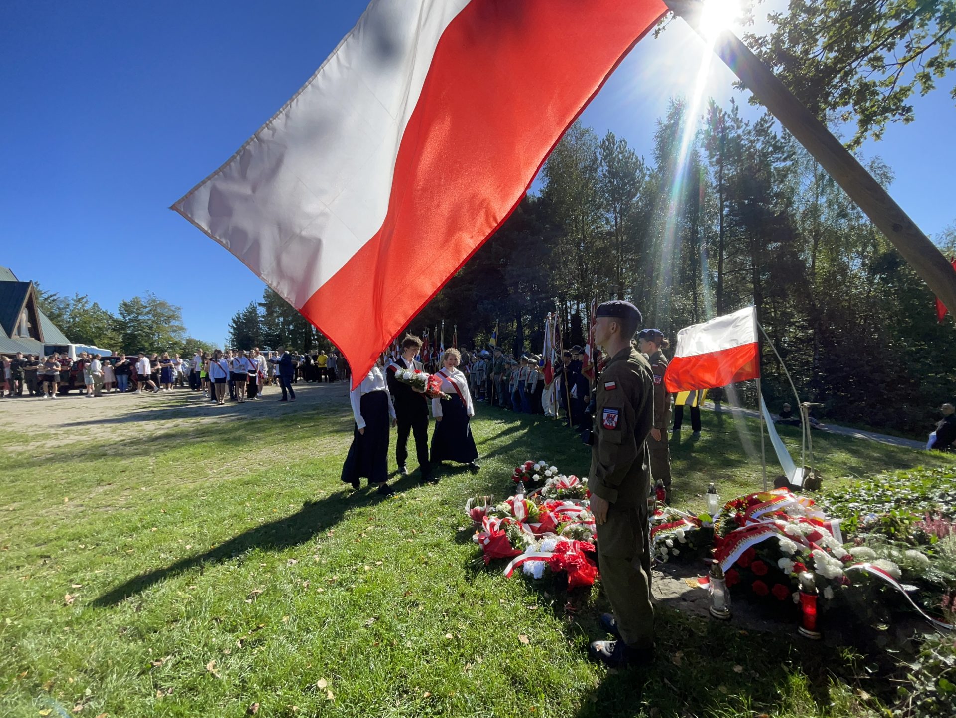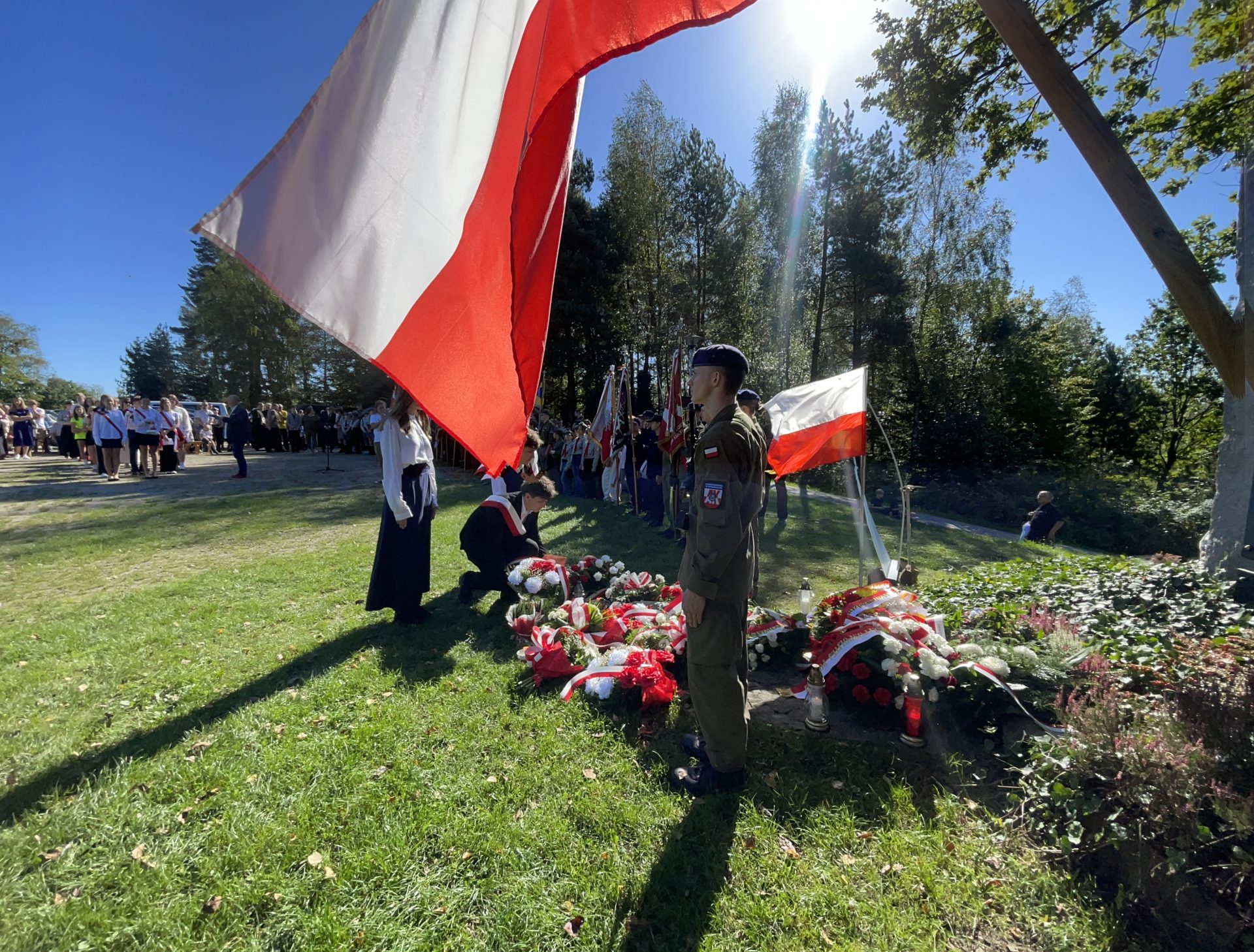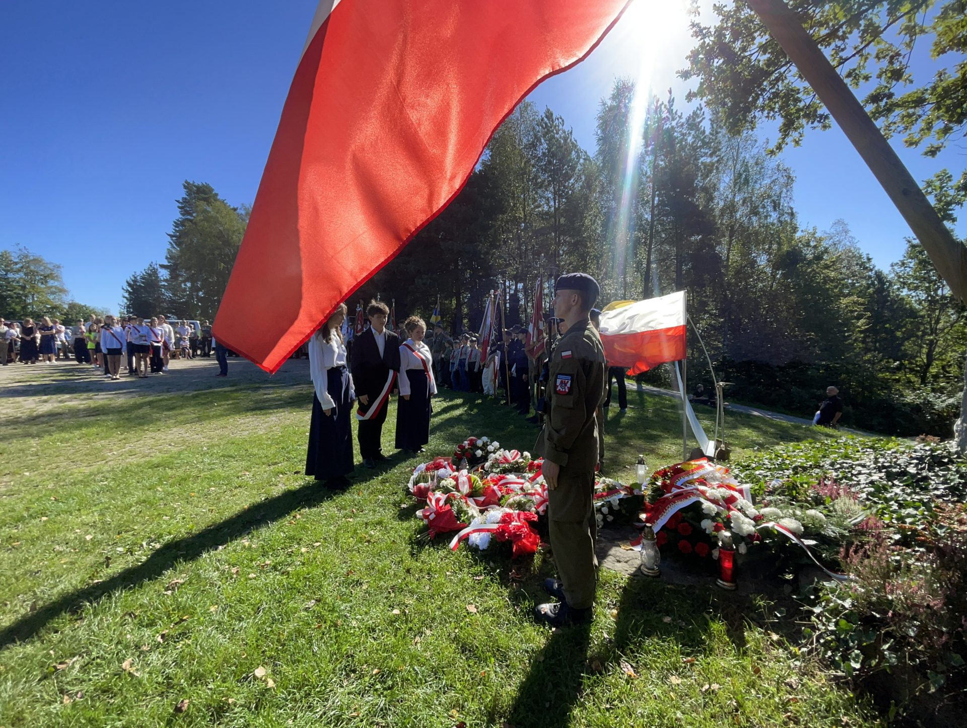 W tym roku przypada 81 rocznica pacyfikacji wsi Jamna i bitwy partyzanckiej stoczonej 25 września 1944 roku przez Batalion „Barbara” 16 Pułku Piechoty Armii Krajowej z siłami niemieckimi i SS „Galizien”. W odwecie za pomoc partyzantom, wieś została spacyfikowana i podpalona przez Niemców, co skutkowało śmiercią kilkudziesięciu niewinnych mieszkańców. Tradycyjnie w Jamnej organizowane są uroczystości upamiętniające te tragiczne wydarzenia, obejmujące m.in. apel poległych, złożenie kwiatów pod pomnikami, mszę świętą w intencji poległych oraz rekonstrukcję bitwy. W tym roku uroczystości patriotyczne odbyły się w dniu 21 września 2025 r. Naszą szkołę reprezentowali uczniowie : Anna Krawczyk, Milena Wojna, Krystian Wróbel i Wojciech Madej z klasy IV THI oraz Klaudia Baniak z I LO.
