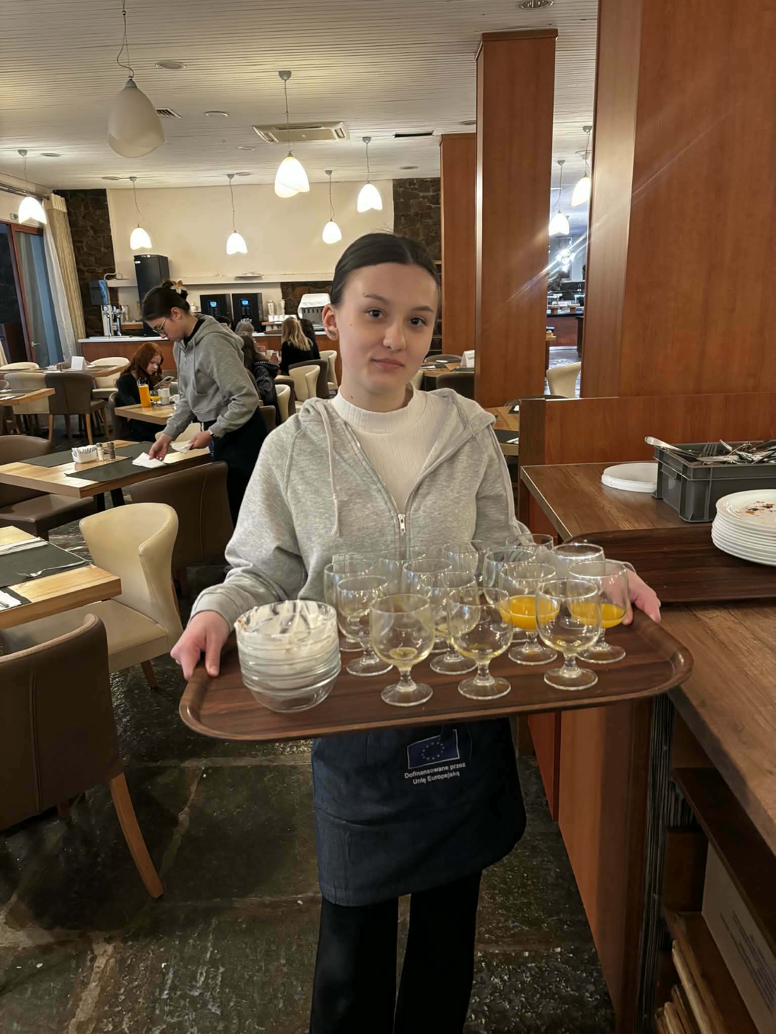 Młodzież zdobywała również doświadczenie w bezpośredniej obsłudze gości w barze, bufecie i sali restauracyjnej. Ćwiczyła różne techniki serwowania potraw, komunikację z gośćmi oraz zasady profesjonalnej obsługi kelnerskiej. Dzięki temu uczniowie mogli poznać standardy pracy w gastronomii oraz rozwijać umiejętności pracy zespołowej i odpowiedzialności za powierzone zadania.