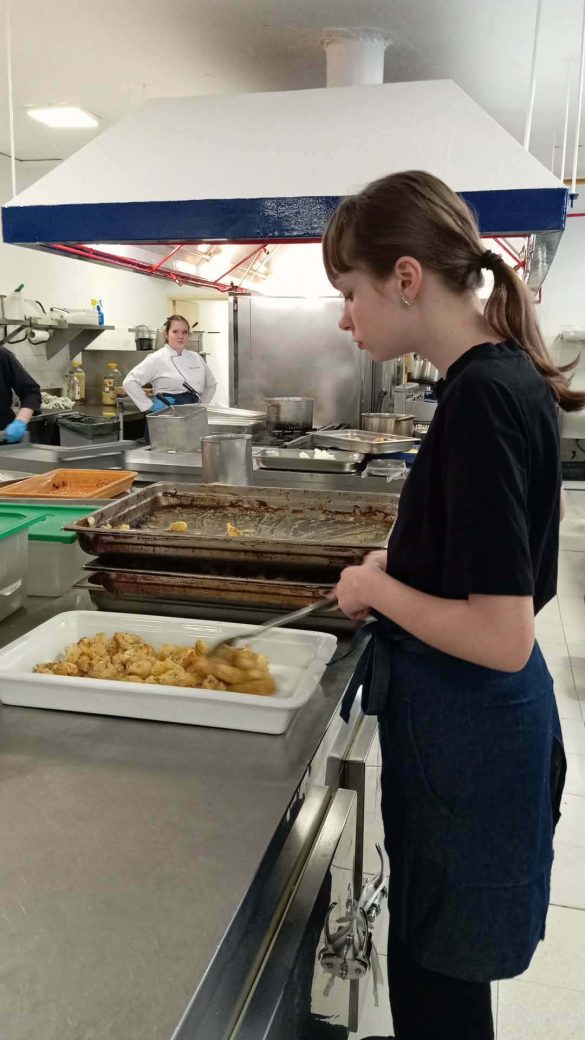 Podczas praktyk uczniowie przygotowywali różnorodne potrawy, takie jak surówki, sałatki, zupy, sosy oraz przekąski. Wykonywali także dania z warzyw, mięsa i ryb, ucząc się właściwego doboru sprzętu gastronomicznego oraz odpowiednich technik obróbki termicznej. Poznawali charakterystyczne przyprawy kuchni greckiej i uczyli się dopasowywać je do konkretnych potraw, dzięki czemu poszerzali swoją wiedzę kulinarną i poznawali elementy lokalnej tradycji gastronomicznej. Ważnym elementem zajęć było również utrzymywanie porządku na stanowisku pracy oraz właściwa organizacja pracy w kuchni.